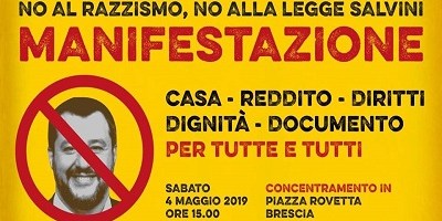 No al razzismo No alla legge Salvini Sabato 4 Maggio 2019 ore 15.00 Brescia